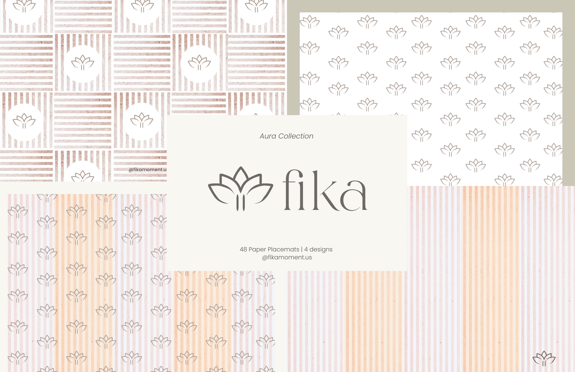 This block includes 48 premium disposable paper placemats with 4 exclusive designs (12 of each), blending neutral palettes, lotus motifs, and subtle texture for a calm, balanced aesthetic.